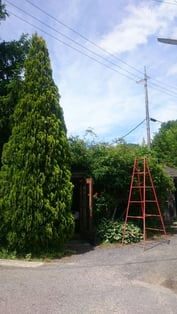 ブルーベリー狩りの受付場所が木やバラに覆われて見えなくなってきていたので大きなバラを根っこから掘り上げて撤去しました。もったいない気もしたのですがやってみるとスッキリ。