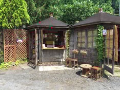 エトファルトの受付け、三角屋根の六角形の小屋。ビーハウスといいます。