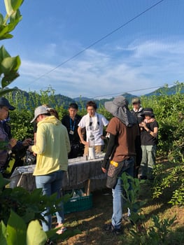 猛暑や台風などヒヤヒヤする日が続き、撮影のタイミングにブルーベリーが良い状態にあるか心配していましたがとってもベストタイミングでした。