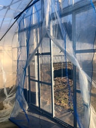 問題は脱走者です。ミツバチは巣箱に戻ってくる習性があるとかなんとか。ハエは逃げたら逃げっぱなしで減る一方です。温度調整で換気したり水やりの時なんかがとっても脱走チャンスになってしまいます。4㎜目のネットで入り口付近をガードはしてみましたがビニールの内張りの隙間とか色んな場所からちょいちょい外に出ようとするハエがいたりします。外にでたら寒過ぎてきっと生きていけないよ~と呼びかけてはおりますが出る子はいっちゃいます。寒っ!とUターンするお利口な子もいるので面白い。ハウスの中を歩いてもハエがどれくらい減ったのか今何匹くらいいるのかよくわかりません。色んな虫に囲まれて暮らしていますが数で考えてみたことなんかほとんどありませんから。ちなみに、ビーフライは1匹2円くらい。出ていく子や墜落死してる子をみるとついチャリンチャリンと2円に見えちゃいます。それでもミツバチと比べたらとってもリーゾナブルです。